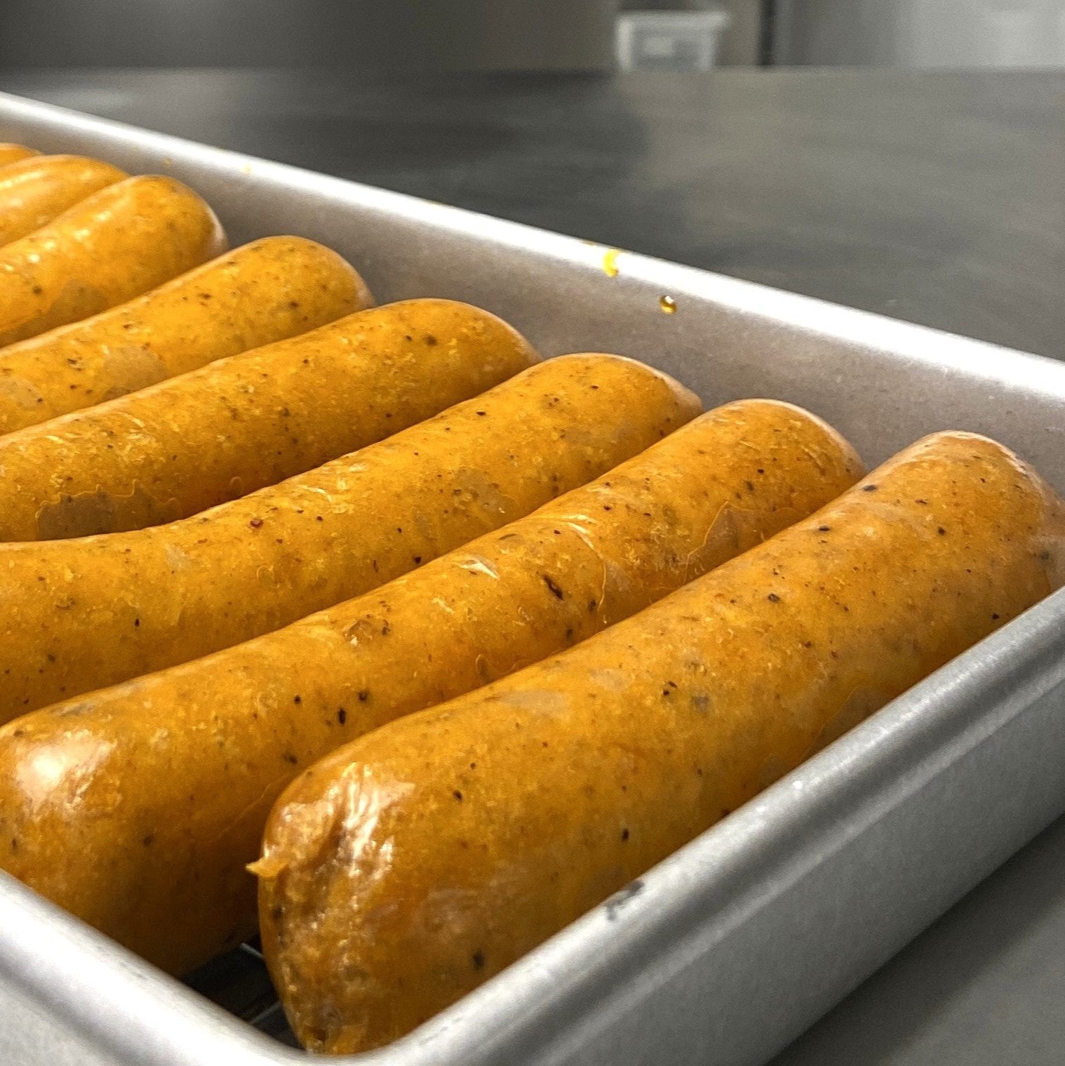 お肉好きも唸る、植物由来なのに旨みがギュッと詰まったソーセージ。ひよこ豆、発酵大豆、秘伝のスパイスミックスを使って手作りしています。 こんにゃくとココナッツオイルで見事な食感を生み出し、ソーセージの皮は海藻を使用しています。日本には発酵技術の長い歴史があり、多くの料理に「うま味」を与えています。おいしさを追い求めて、さまざまな発酵技術をヒントに、ヨーロッパの最新鋭のソーセージ製造設備を使用することでHAKKOのソーセージは生まれました。